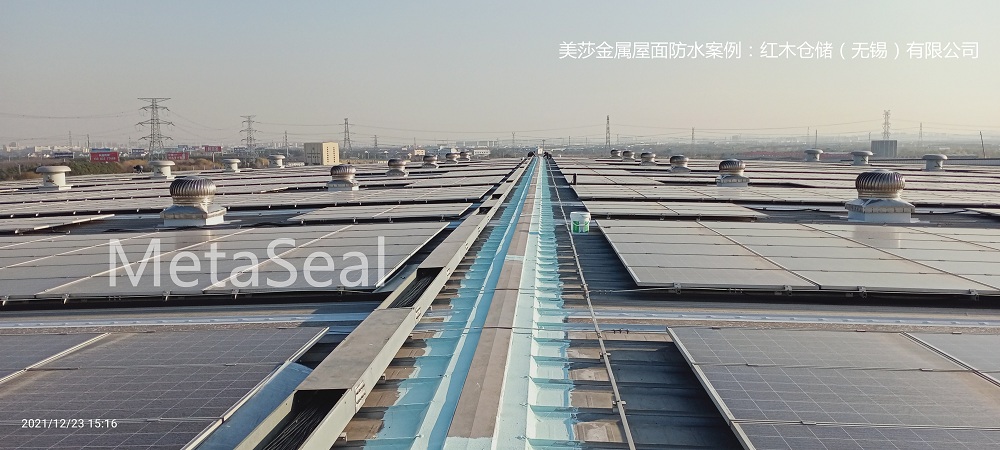 经过严格的招投标流程,红木仓储(无锡)有限公司项目,最终采用MetaSeal美莎金属屋面防水体系,分别于2021年5月份和12月份,对上述有渗漏水隐患的区域,分二次进行了系统防水维护。经过酷暑严寒循环、多轮下雨检验,达到预期防水维护的效果。